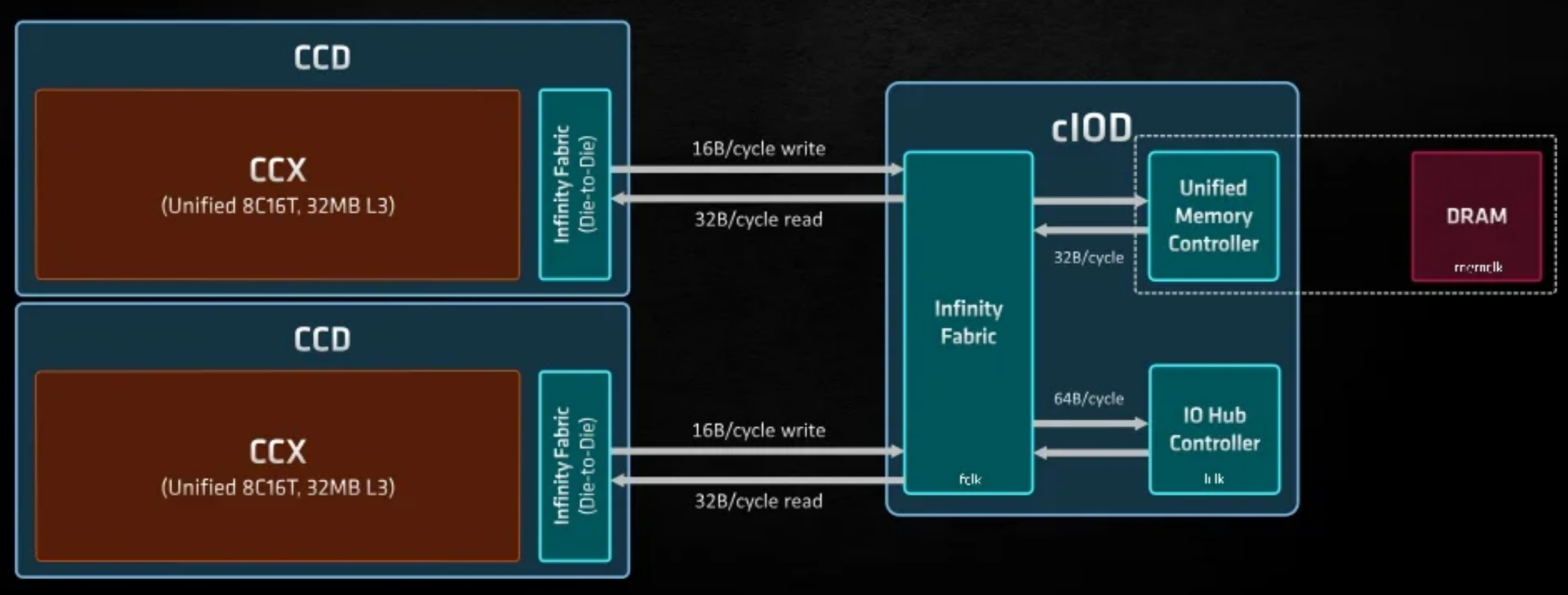 Figure 2: Zen3 topology for a two-CCD processor