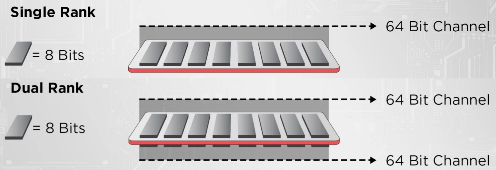 Figure 7: Single rank (top) vs. dual rank (bottom) layouts