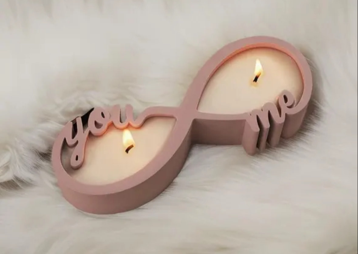 - A handmade scented candle in a solid mold in the shape of an infinity sign. Figure 2 shows our main inspiration for this souvenir, which we had stumbled upon online while we were searching for ideas. We though I could handle designing the mold, while my wife would handle melting the wax and affixing the wick.